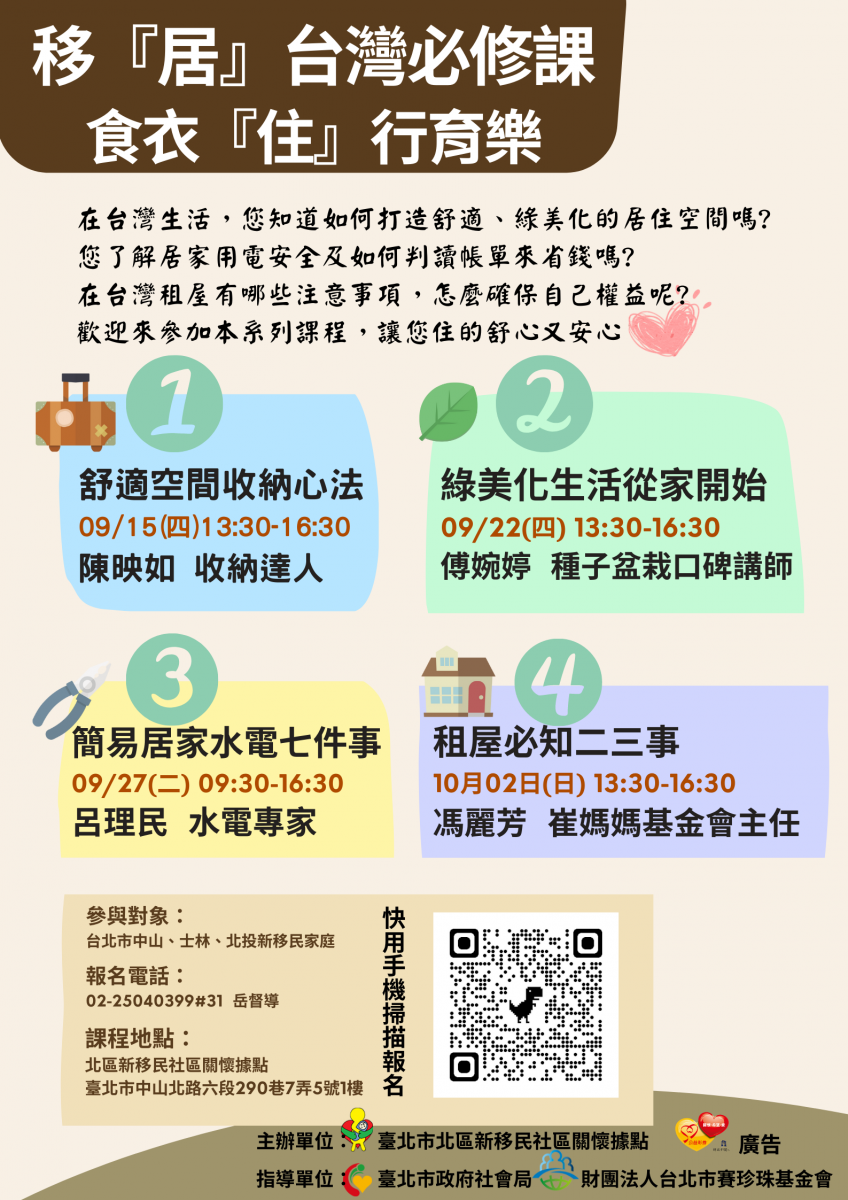 【轉知】北區關懷據點-移『居』台灣必修課-食衣『住』行育樂