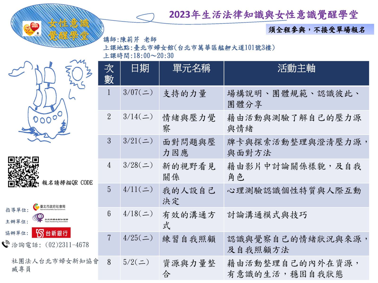 【轉知】社團法人台北市婦女新知協會-生活法律知識&女性意識覺醒學堂