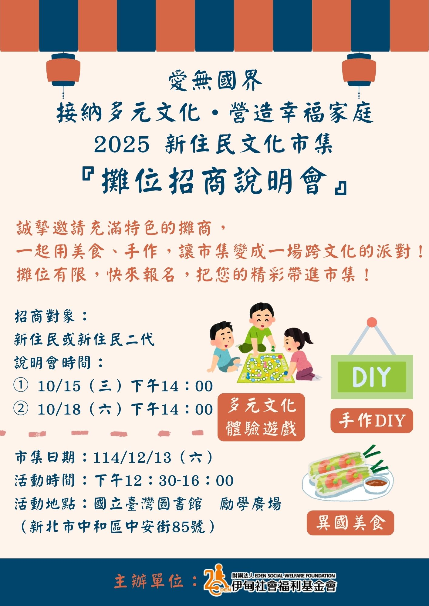 【轉知】伊甸基金會「愛無國界-接納多元文化‧營造幸福家庭2025新住民文化市集」攤位招商說明會資訊