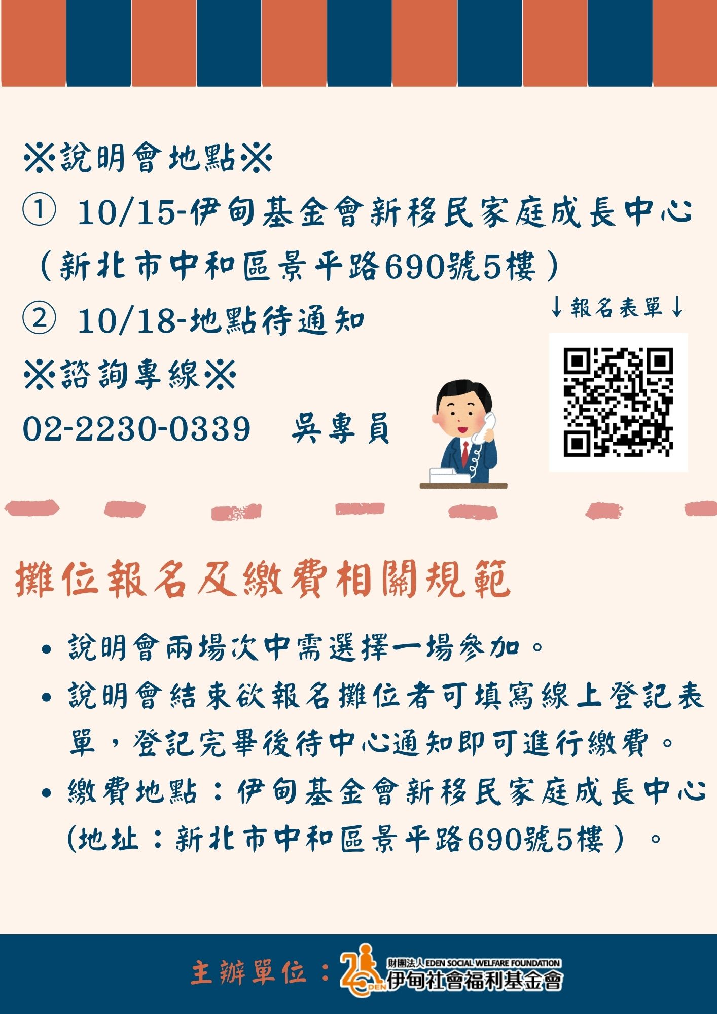 電話報名或有相關疑問,歡迎聯絡新移民家庭成長中心吳專員
