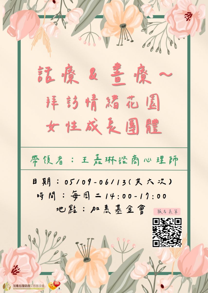 【轉知】加惠基金會-遇見從「心」出發的妳~女性自我療癒成長團體